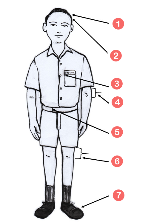 - පාසල් ලාංඡනය කමිසයේ වම් පස සාක්කුවේ කෙලවර පැලදිය යුතුය.